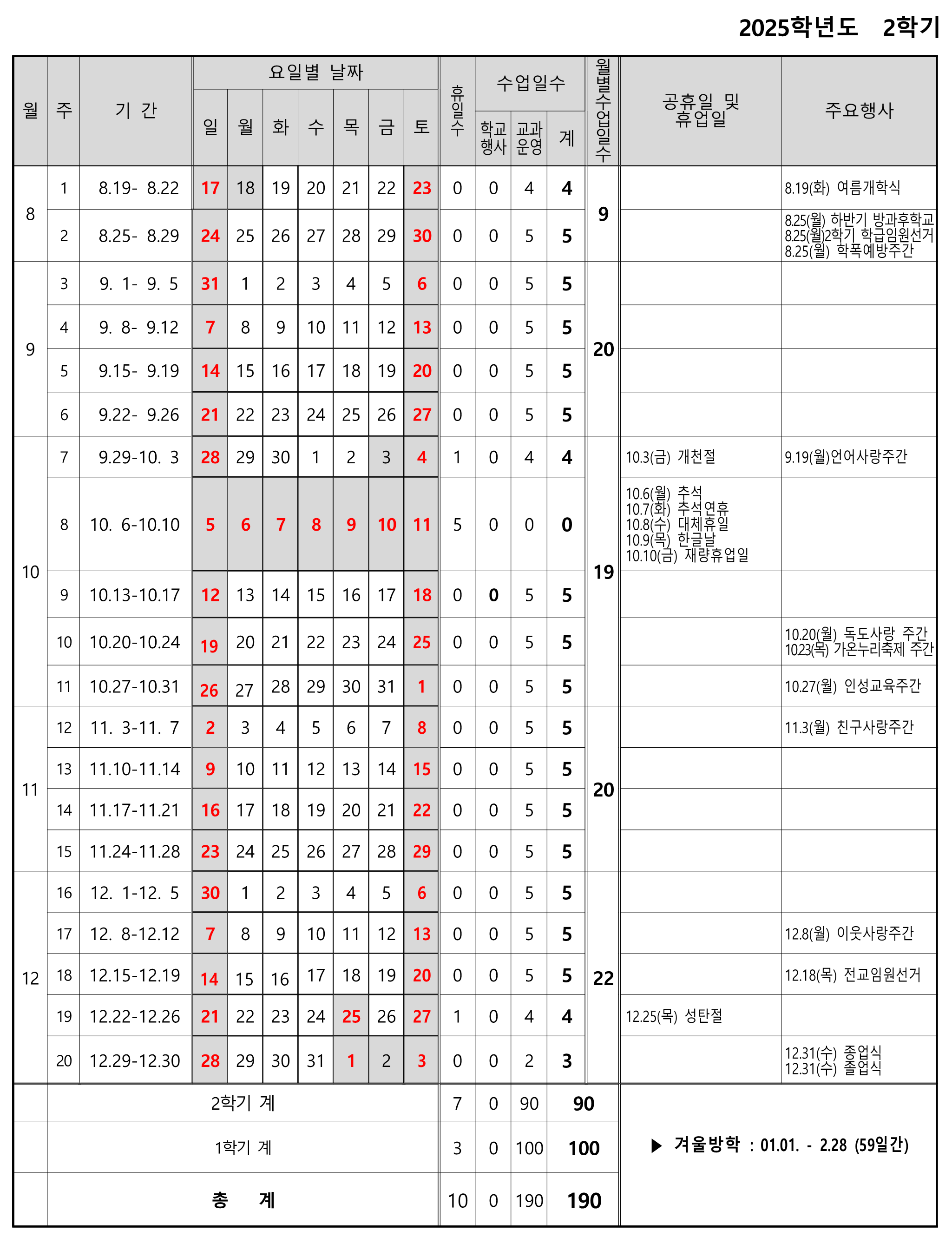 겨울방학 기간 | 2026.01.01.(목) - 2026.02.28.(토) | 59일 |
